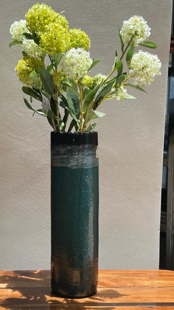 Modern Cylindrical dark green vase in Uganda with artficial flowers